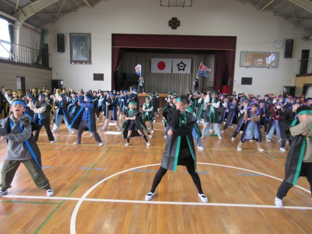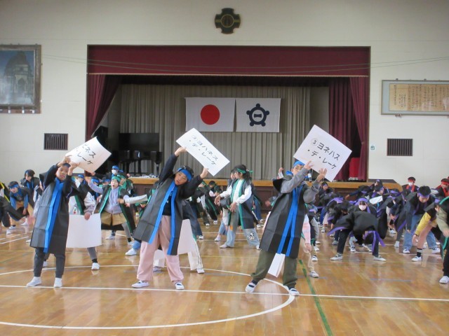 6年生を送る会に向けて、心を一つに練習しています。