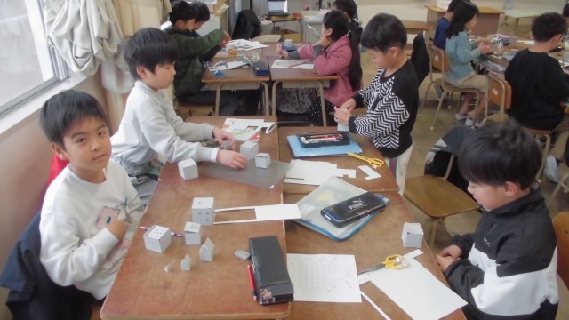 算数も国語も、班の机の形にして、みんなで教え合いながら勉強をしました。いろいろな意見が出て、楽しく学習できました。