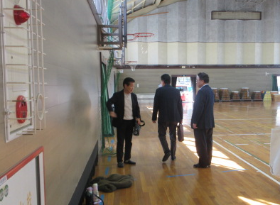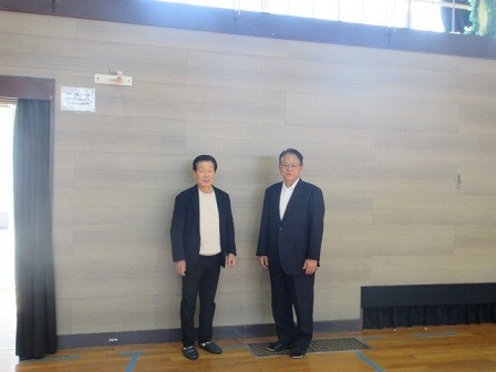 工事の完了に合わせ、伊藤様が新しくなった場内の様子をご覧にいらっしゃいました 当日は市役所関係者の立ち会いのもと、新装された壁面の仕上がりを確認していただきました。