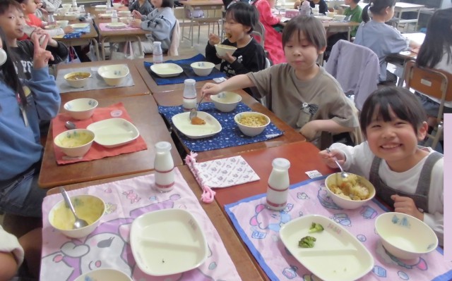 算数では「音声計算」の練習を行ったり、給食を楽しく会食したりと、級友たちと仲が少しずつ打ち解けてきました。友達のよさを通して、学級を深めていきたいです。
