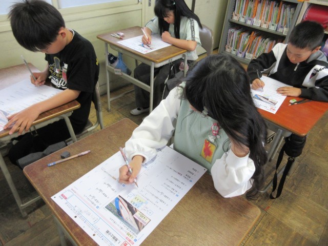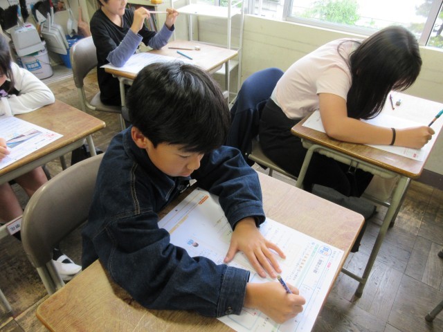 算数のテストを行っている様子です。5年生になっての初めてのテスト、真剣に取り組んでいます
