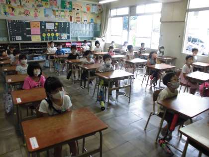 終業式が放送で行われました。話の聞き方も身に付き、すっかり小学生の一員です。あゆみを受け取り、入学してからこれまでの学校生活を振り返り、自分の成長を感じている様子でした。夏休みの過ごし方の話もよく聞き、心を引き締めていました。楽しい夏休みが始まります。また2学期に元気なみなさんに会えるのを楽しみにしています。1学期間ありがとうございました。2学期もよろしくお願いします。