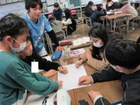 音楽では、木琴や鉄琴、リコーダーなどのさまざまな楽器を使用して、グループごとで演奏の発表を行っています。学校のチャイムの音をパート分けして演奏したり、アレンジしたりするなど各グループ工夫を凝らしています。