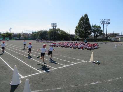 今回は、並び方と走るコース、ゴールをした後の並び方の確認をしました。先生の話をしっかりと聞くことができました。ピシっとした素晴らしい姿勢も輝いていました。