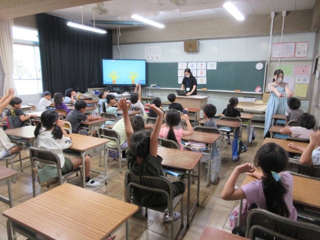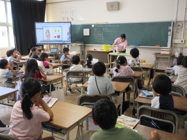 ふれあい学級の生活単元、1年生の算数、2年生の英語、3年生の体育の学習の様子です。