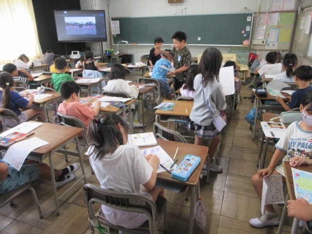 生活、道徳の授業です。1枚目の生活では、「まちたんけん」で学んだことをまとめました。