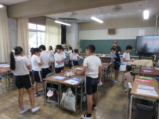 4年生の図工では、製作した「まぼろしの花」の作品鑑賞をしました。友達の作品を見て工夫しているところや素敵だと思うところを見つけました。