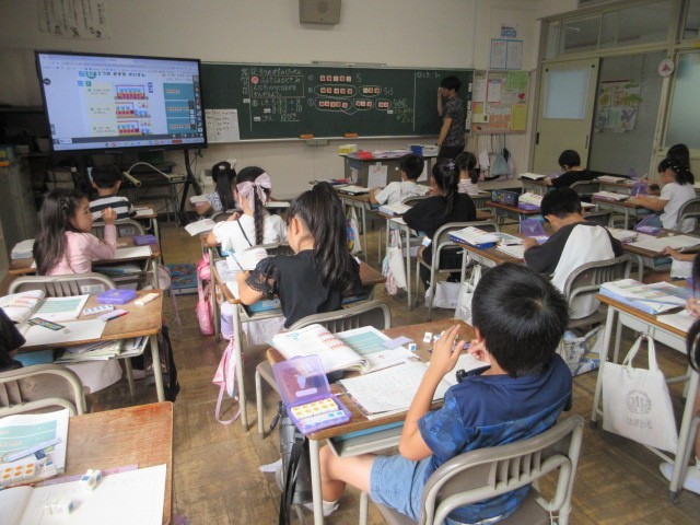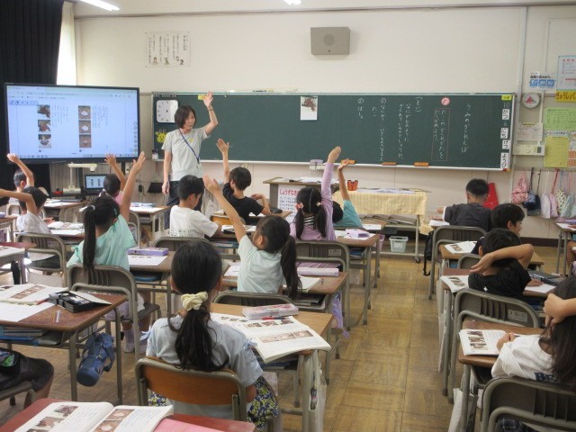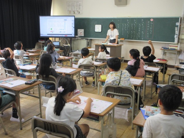 書写、算数、国語の授業です。3枚目の国語の「うみのかくれんぼ」では、タコのかくれ方を文中から確かめました。