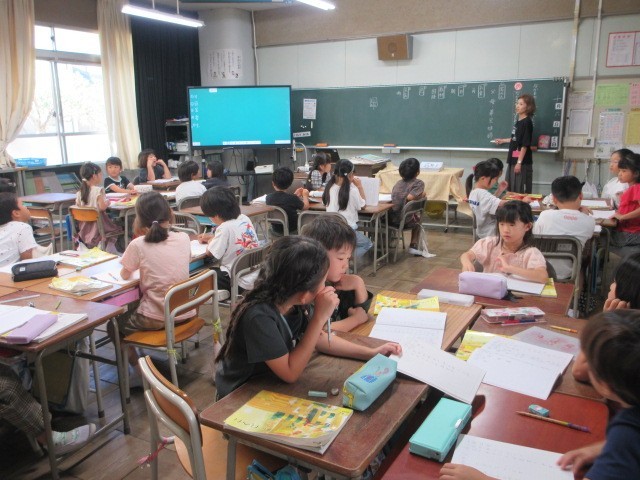 書写、国語の授業です。3枚目の国語では、「なかまのことばをあつめよう」というめあてで、グループで協力して確かめました。