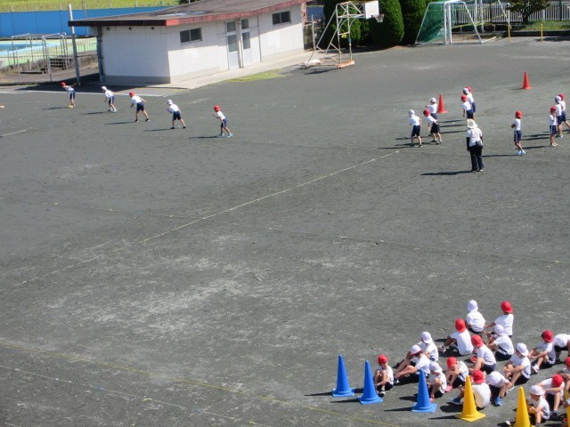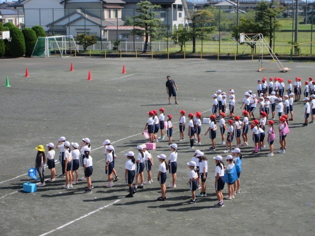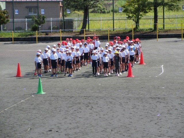 運動会の練習です。「台風の目」「80m走」の並び方や動きを確認しました。