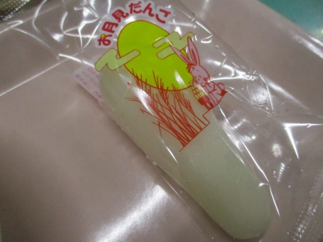 月見だんごには、丸い形をした関東風と、さといもの形をした関西風のものがあります。給食では関西風の月見だんごが出されました。