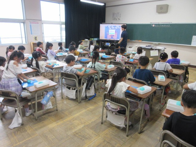 生活、図工、学活の授業です。2枚目の図工では、粘土をてのひらで伸ばして、長いひも状にしました。