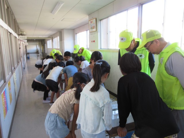 今日は、ホタルの幼虫や餌になるタニシの放流もしていただきました。4年生で幼虫の世話、フィッシュプールの管理を続けていきます。