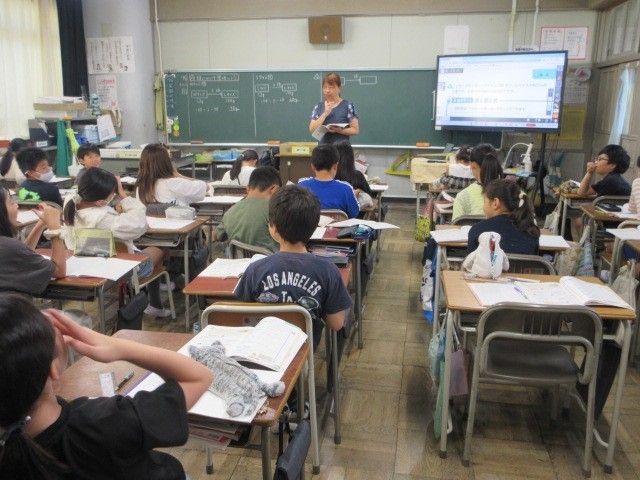 算数、音楽の授業です。1枚目の算数では、図をつかって重さの求め方を考えました。