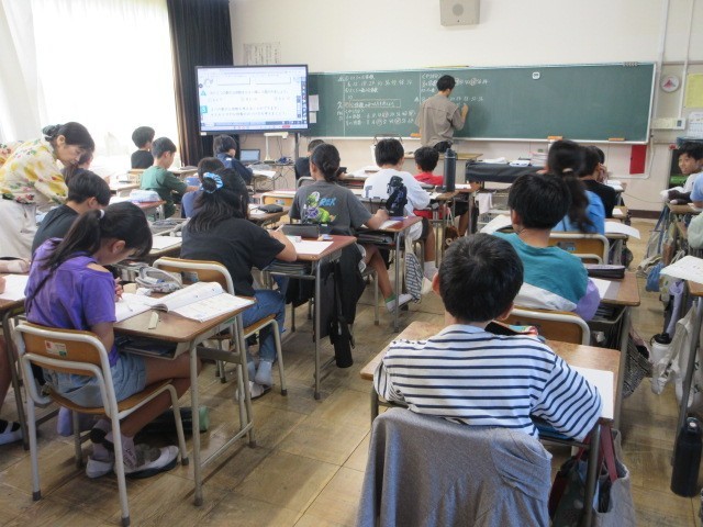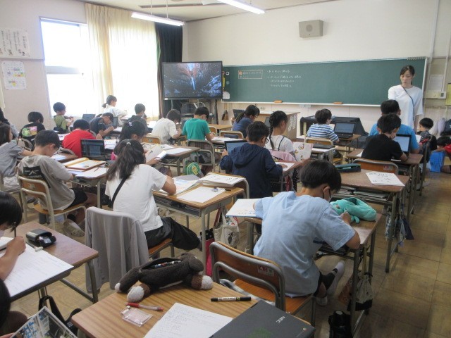 算数、英語、総合の授業です。3枚目の総合では、福祉について調べ、いろいろな工夫を考えました。