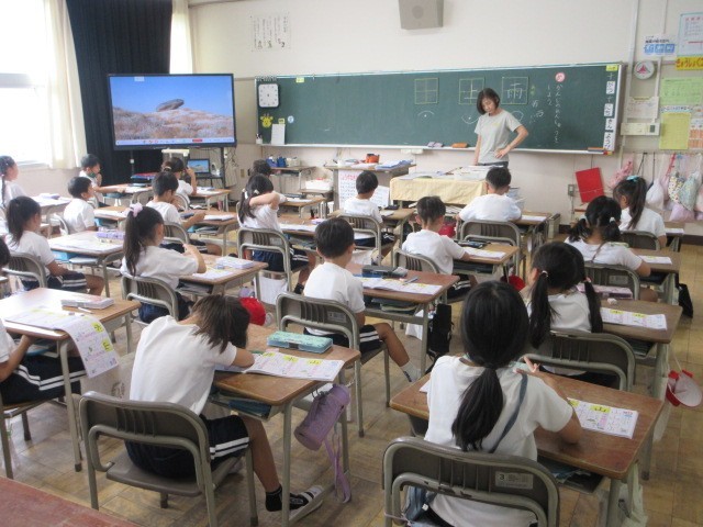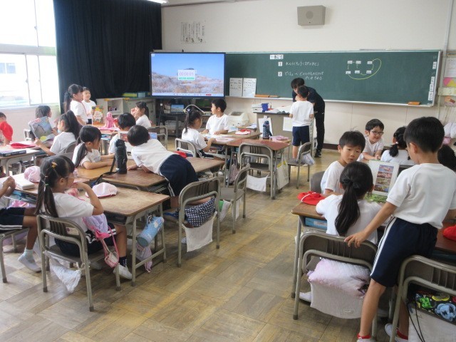 学活、国語の授業です。2枚目の国語では、どんな生き物についてまとめるのか、本で調べました。