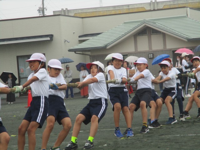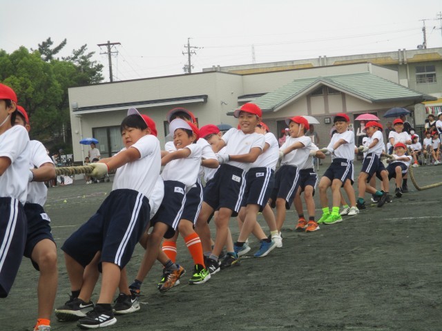 本日、運動会が行われました。5年生は、綱引きと徒競走を行いました。