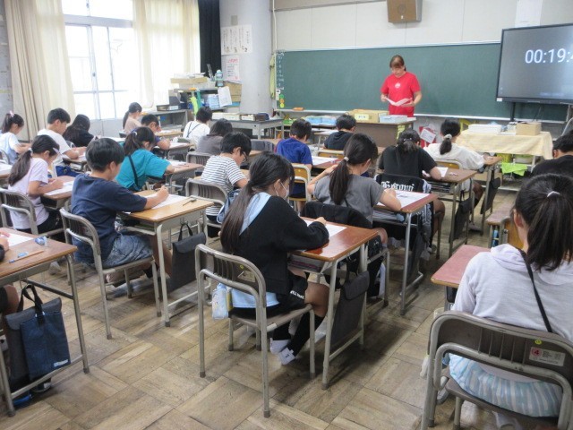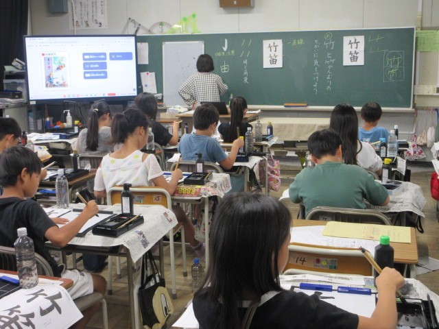 英語活動、書写、社会の授業です。2枚目の書写では、「竹」と「たけかんむり」の違いに気をつけて「竹笛」の練習をしました。
