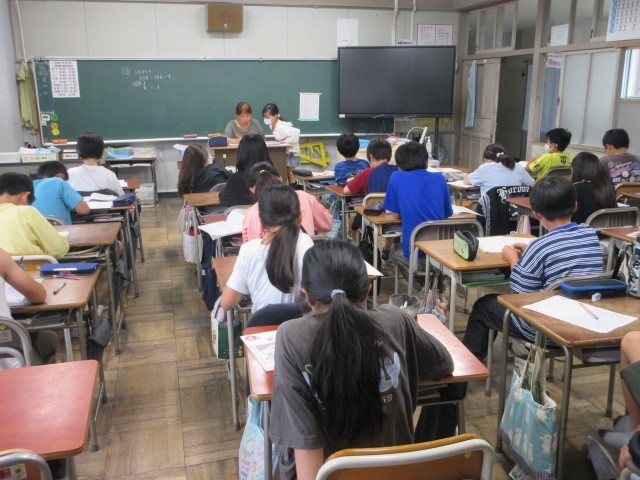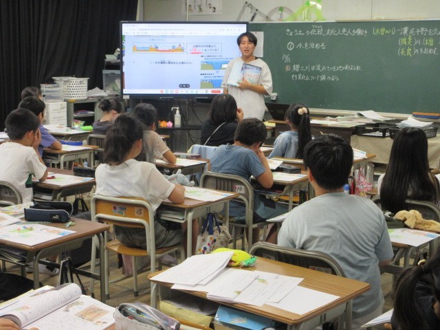 算数、社会の授業です。2枚目の社会では、木曽三川の地域の様子とその変化を調べました。