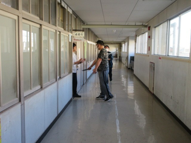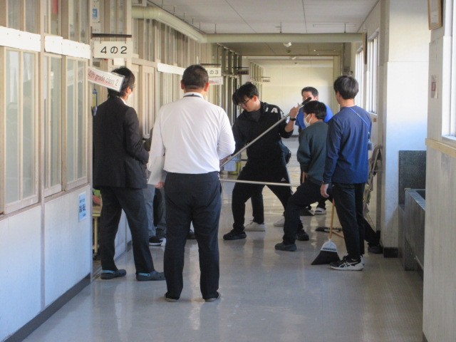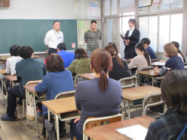 不審者対応訓練の様子です。一宮警察署の方を講師にお招きし、教職員の対応についてアドバイスをいただきました。