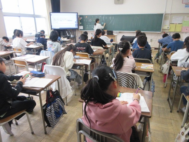国語、算数の授業です。1,2枚目の国語の「クラスで話し合う議題を考えよう」では、議題を考えたり、話し合いのポイントを確認したりしました。