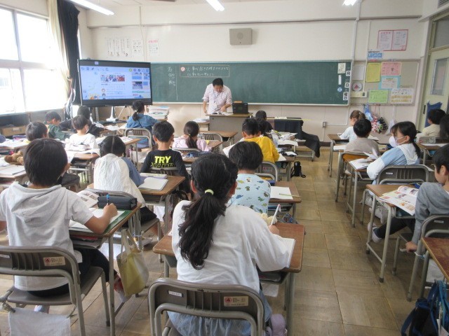 算数、社会、国語の授業です。2枚目の社会では、火事が起きたときの消防の仕事について調べました。