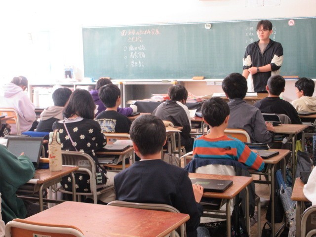 英語、理科、社会の授業です。2枚目の理科の「月と太陽」では、どうして月が満ちたり欠けたりするのかを予想しました。