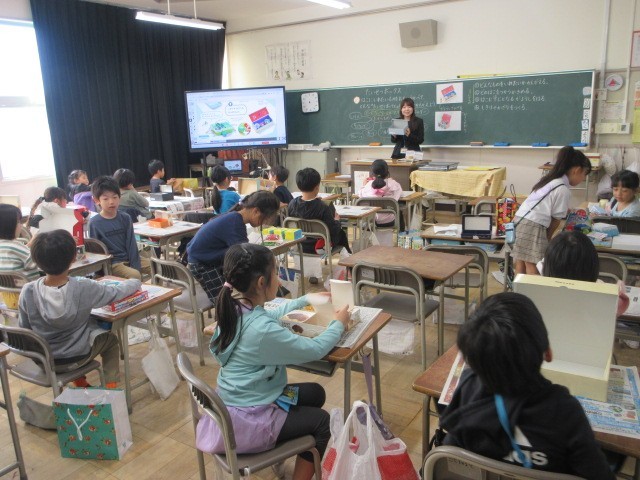 図工、国語、音楽の授業です。1枚目の図工では、入れたい物を思い浮かべながら「たいせつボックス」づくりに挑戦しました。