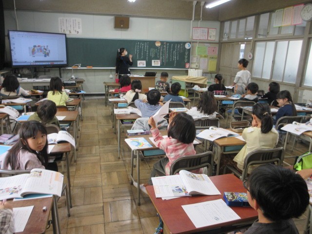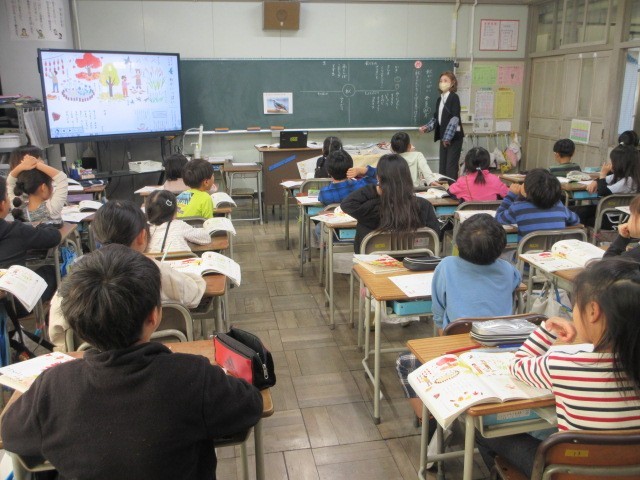 算数、道徳、国語の授業です。1枚目の算数では、かけ算の問題を考えたり、かけ算になるわけを説明したりしました。