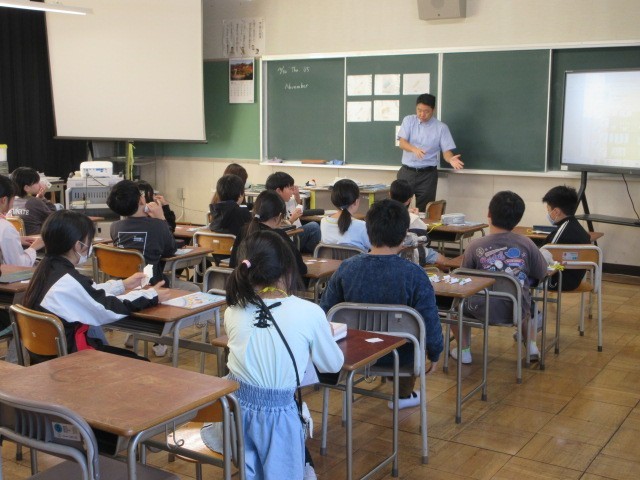社会、算数、英語活動の授業です。1枚目の社会では、郷土のお祭りや年中行事などを調べました。