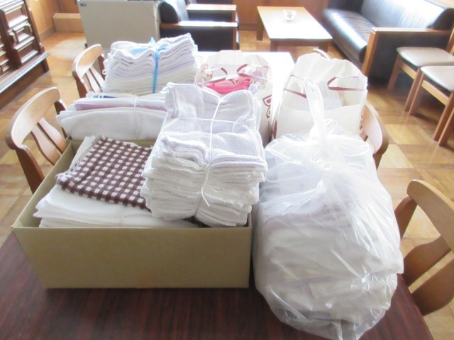 萩原町連区老人クラブから、ぞうきんをたくさんいただきました。