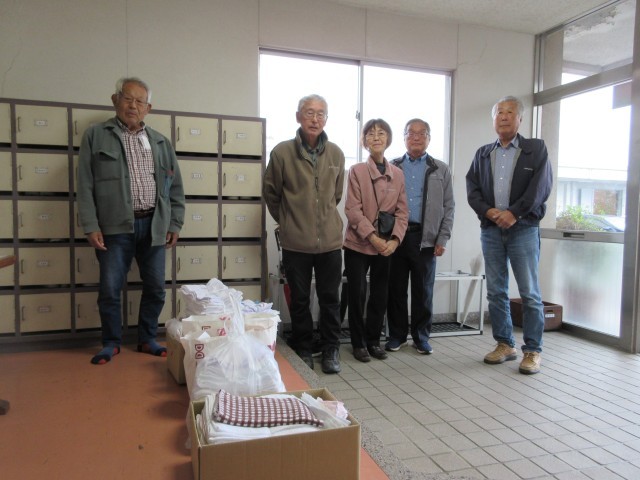 クラブの皆さんが縫ってくださったものを、代表の方々にお届けいただきました。