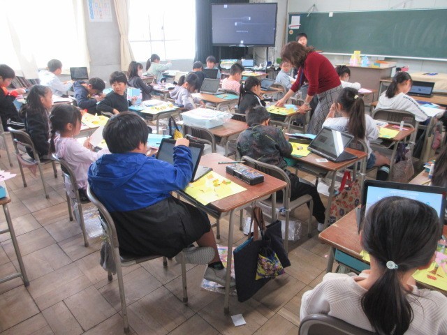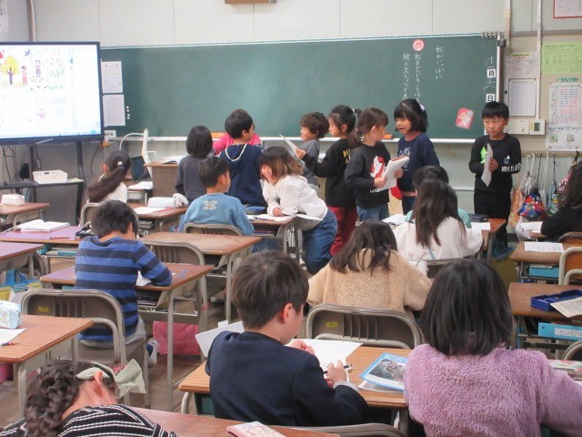 図工、国語の授業です。3枚目の国語では、秋を感じる言葉を使って、絵と文で表現しました。