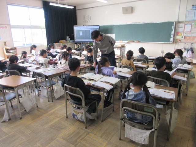 国語の授業です。漢字の確かめや「生きものずかん」づくりに取り組みました。