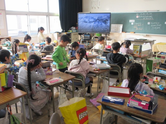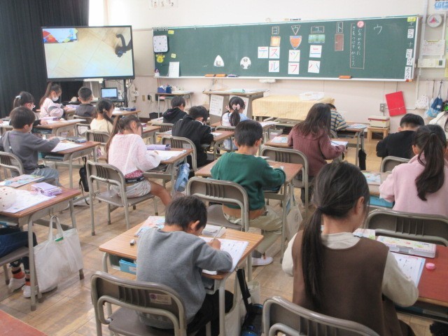 国語、図工、書写の授業です。1枚目の国語では、学習した漢字を使って文をつくりました。