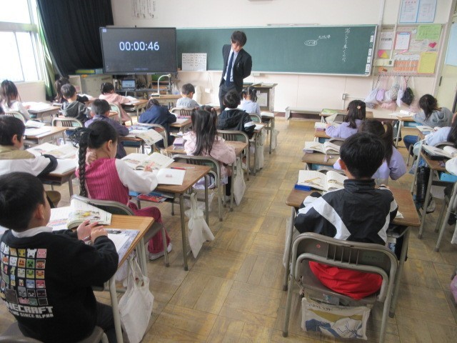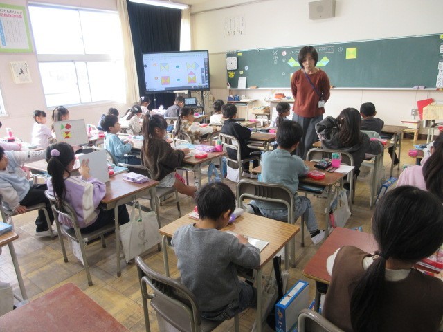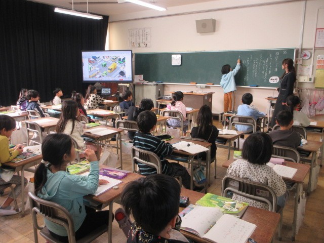 国語、算数の授業の様子です。1,2枚目の国語の「じどう車くらべ」では、挿絵まどを参考にどのような車があるかを確かめました。