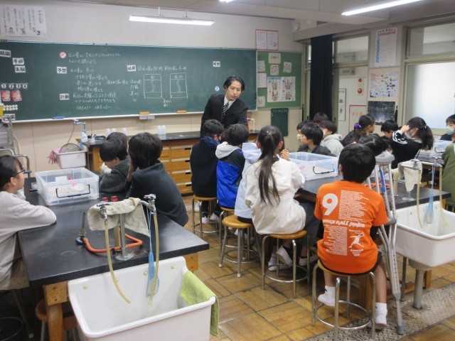 英語、算数、理科の授業です。3枚目の理科では、川の水の量が変化したときのはたらきの違いを調べました。