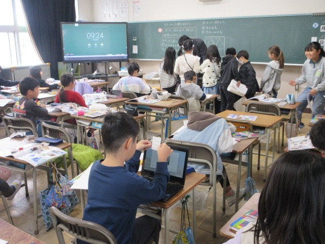 体育、図工、理科の授業です。2枚目の図工では、作りたい世界のイメージを設計図にかきました。