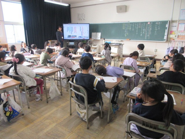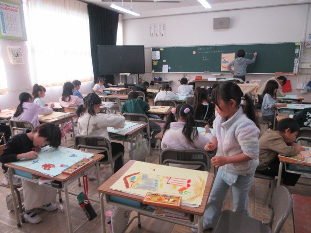 音楽、国語、図工の授業です。2枚目の国語では、本文からバスや乗用車の仕事と車のつくりをまとめました。