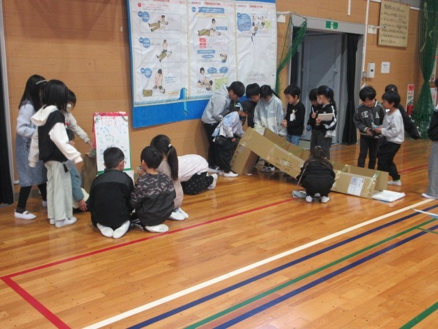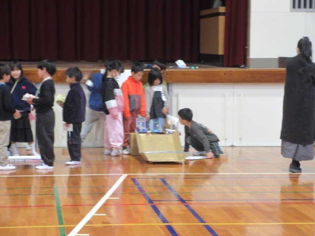 生活の授業です。みんなで作ったおもちゃを使って、1年生の人に楽しく遊んでもらいました。