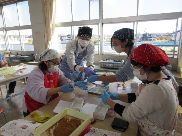 野田屋菓子舗の社長さんを講師としてお招きし、和菓子作りを教えていただきました。