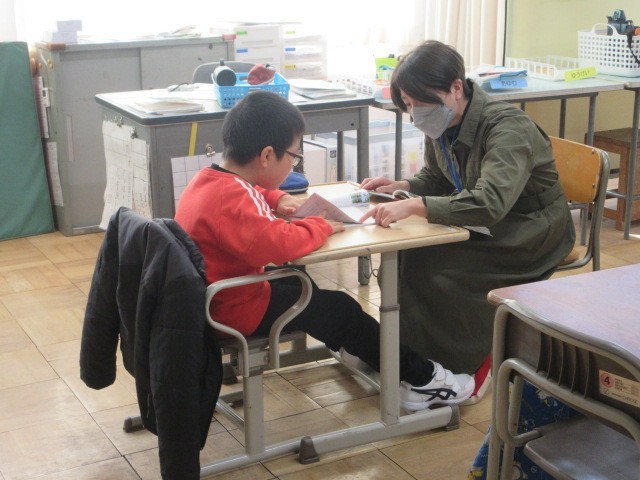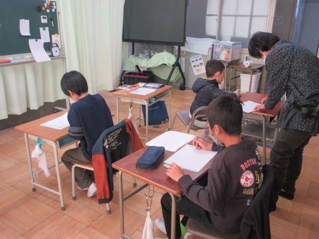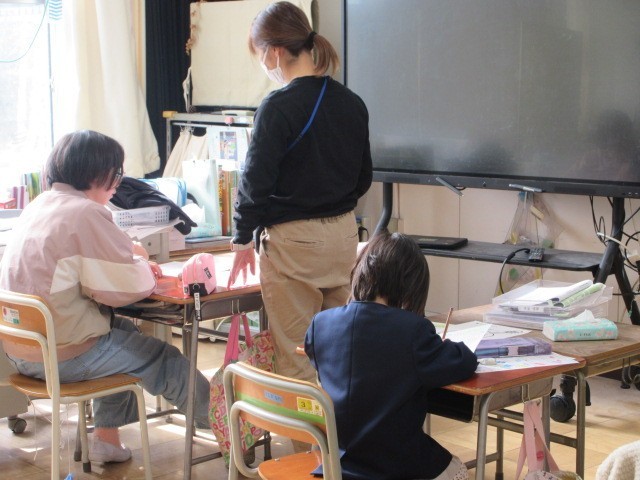 ふれあいの授業の様子です。それぞれの課題に挑戦しています。
