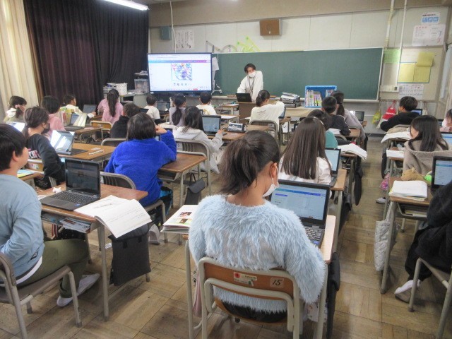 体育、国語の授業です。2枚目の国語では、選んだ工芸品について調べ、その工芸品の魅力が伝わるようにまとめました。