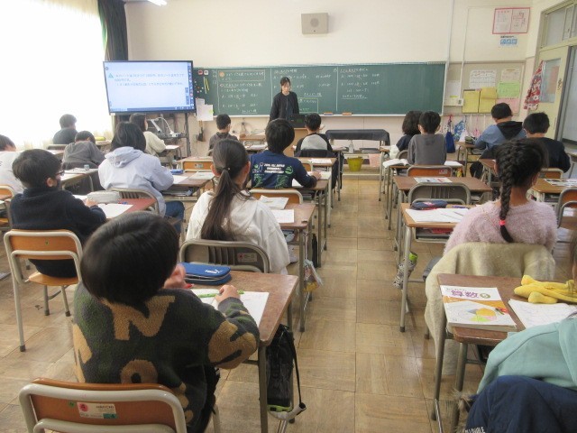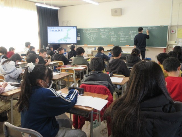 社会、算数の授業です。1枚目の社会では、工業製品がどのように運ばれるのかを調べてまとめました。