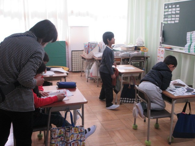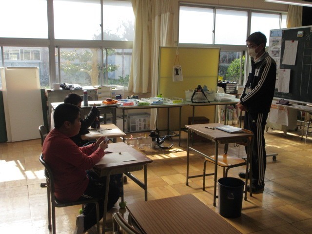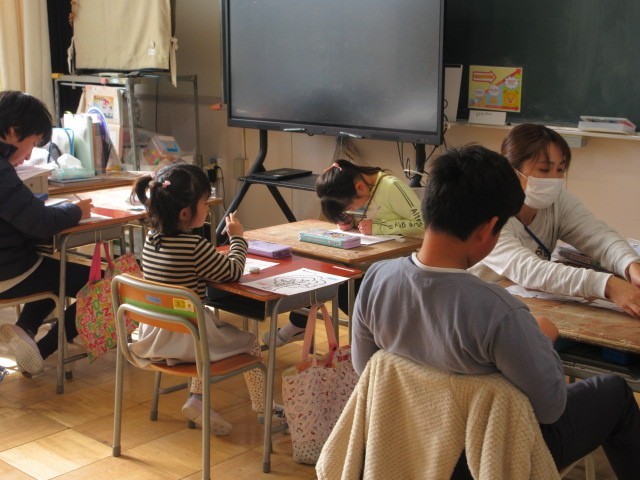 ふれあいの授業です。2枚目の写真は12月のカレンダーづくりに挑戦しているところです。