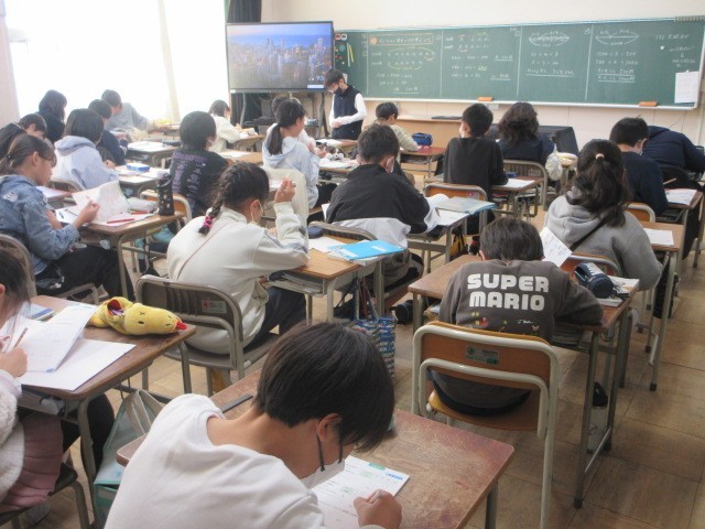国語、英語、算数の授業です。1枚目の国語では、問題意識をもって資料を読むことを確かめました。