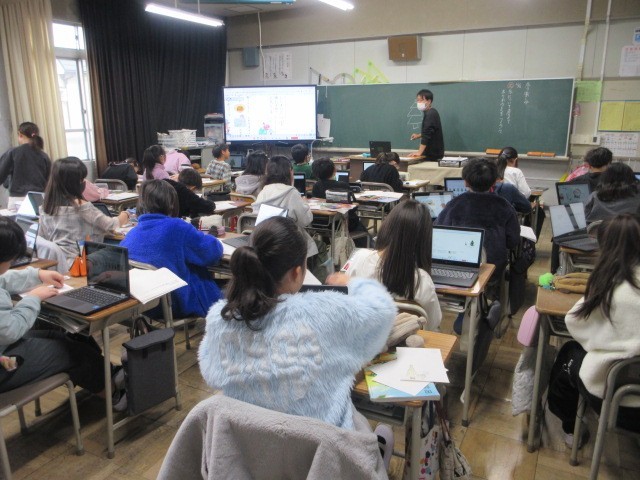 算数、国語の授業です。2枚目の国語では、冬について考え、「冬のかるた」作りに挑戦しました。