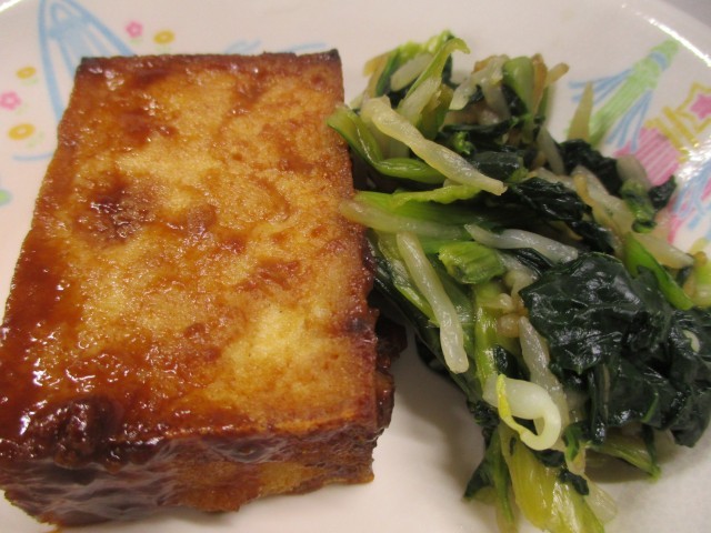 ・絹厚揚げの肉みそがけは、赤みそのほどよい甘さが濃厚な味わいでした。(T.S)