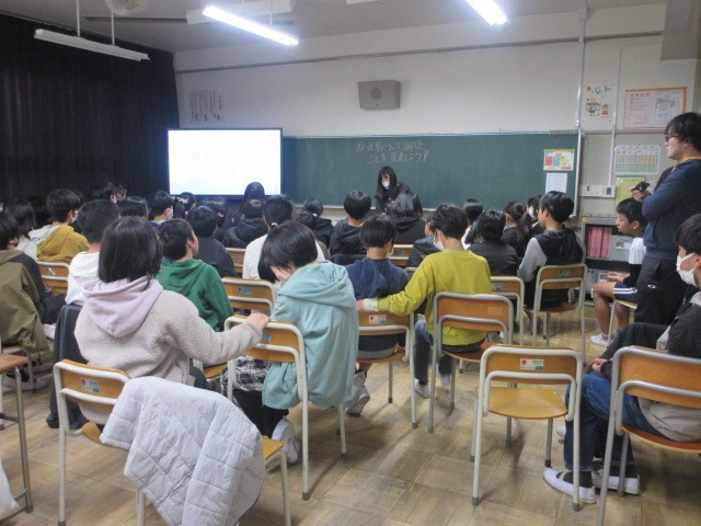 算数、総合の授業です。2、3枚目の総合では、自分が調べた国の文化や様子などをスライドを用いて発表しました。
