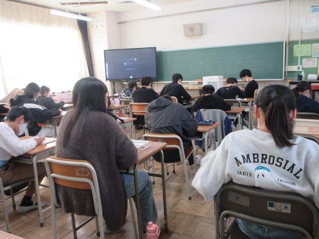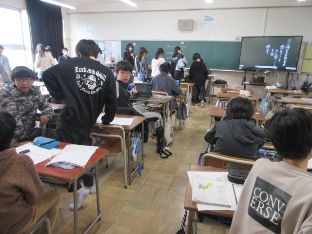 社会、英語、算数の授業です。2枚目の英語では、ボルネオの農園の整備と像の生態についての問題について考えました。